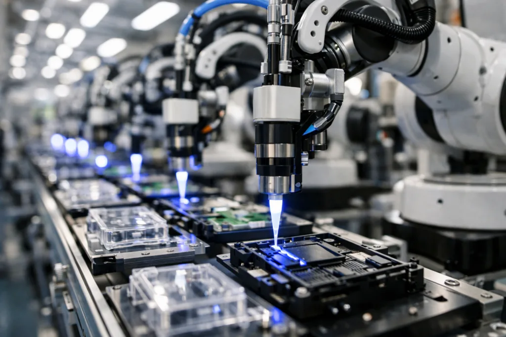 | Acrylic (UV Cure) | Plastic, composites | Fast cure, flexible, good transparency | Display assembly |