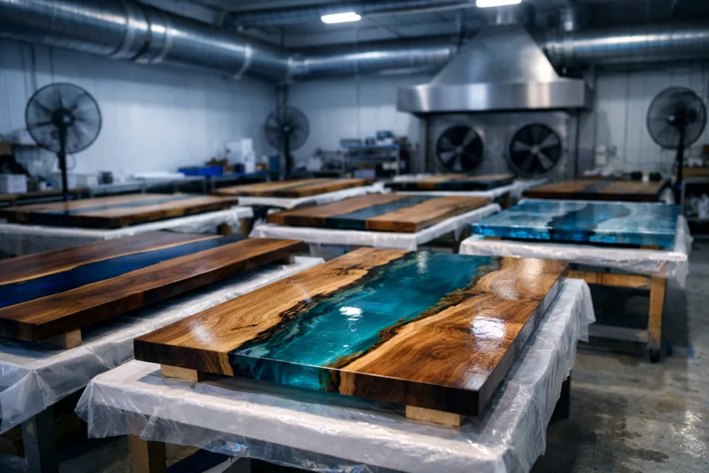 One of the safest techniques is to pour epoxy in multiple thin layers (often 10–25 mm per pour). Each layer cures before the next is added, limiting runaway heat. Professional projects often require staged pouring to achieve deep castings safely.