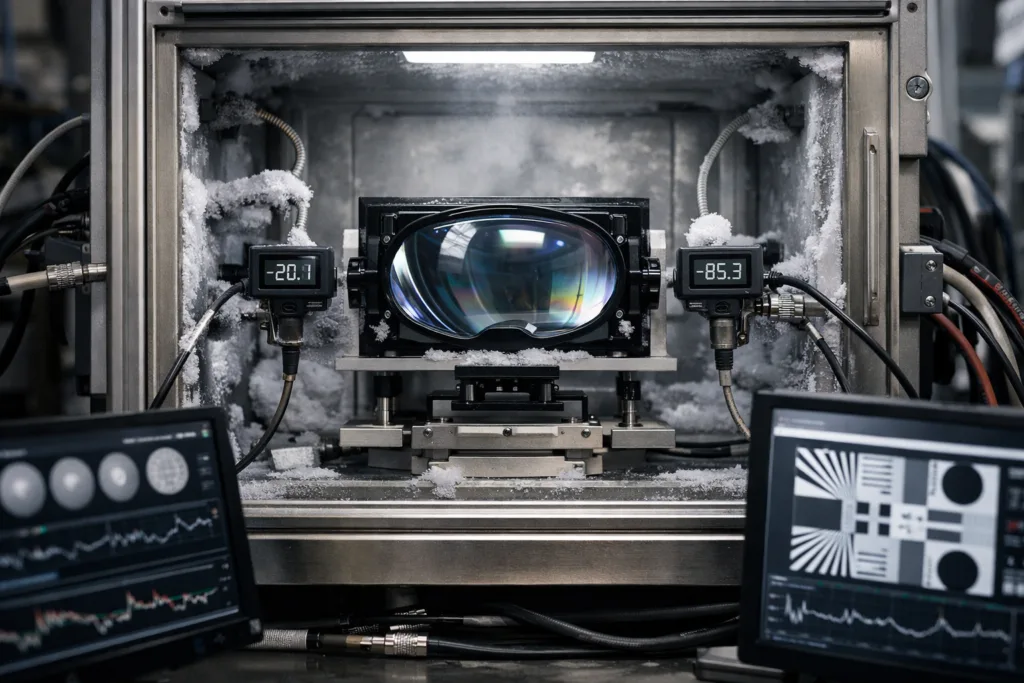 Match adhesive refractive index and modulus to your lens material. Soft polymers need lower modulus adhesives to prevent stress cracking, while glass benefits from rigid, high-shore UV glues. Always confirm compatibility with coatings and anti-reflective layers before mass production.