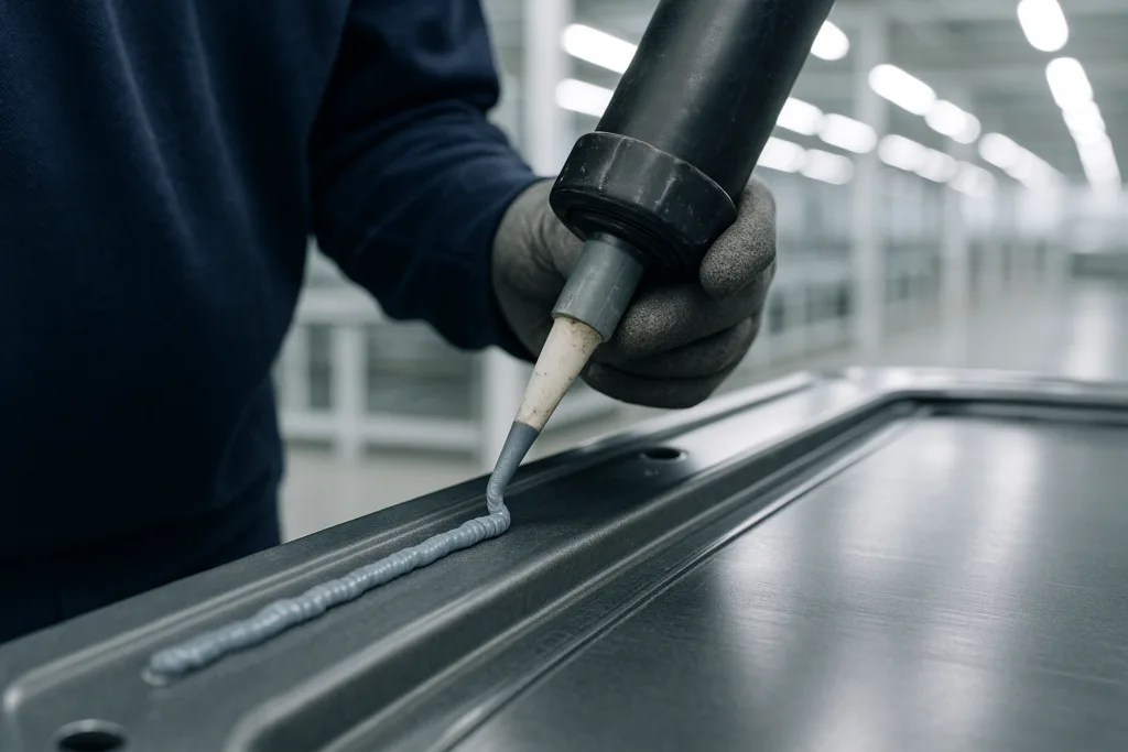 Choose an adhesive compatible with your application equipment. Cartridge bead, roll-coating, slot-die, or static mixing systems all influence fill, gap, and repeatability. For automation, control viscosity and cure speed—robotic arms require predictable flow and set times for programmed cycles.