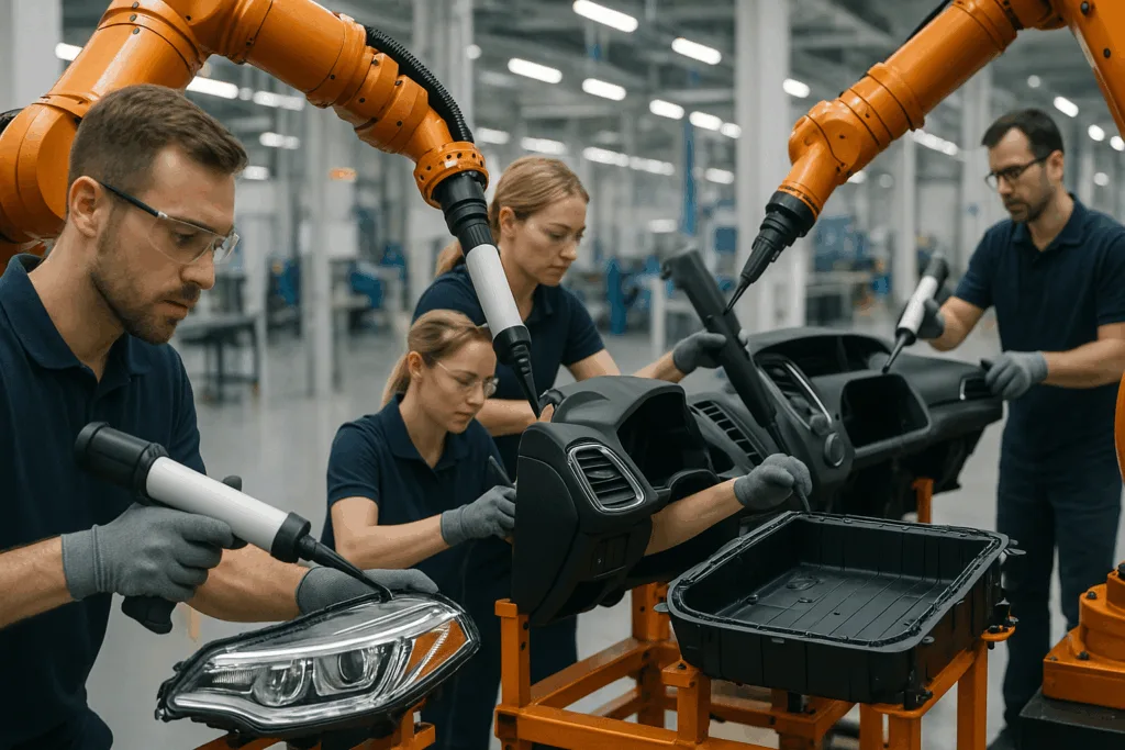 - Interior assemblies: Gluing trim, instrument panels, and displays for quiet, rattle-free cabins.